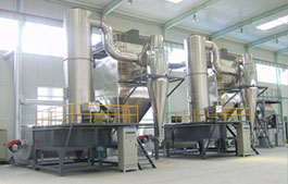 潔凈空氣冷卻后進入制粒塔,在塔內使用離心造粒專用噴頭,通過變頻調速將各種料液霧化成所需要的微小液滴...